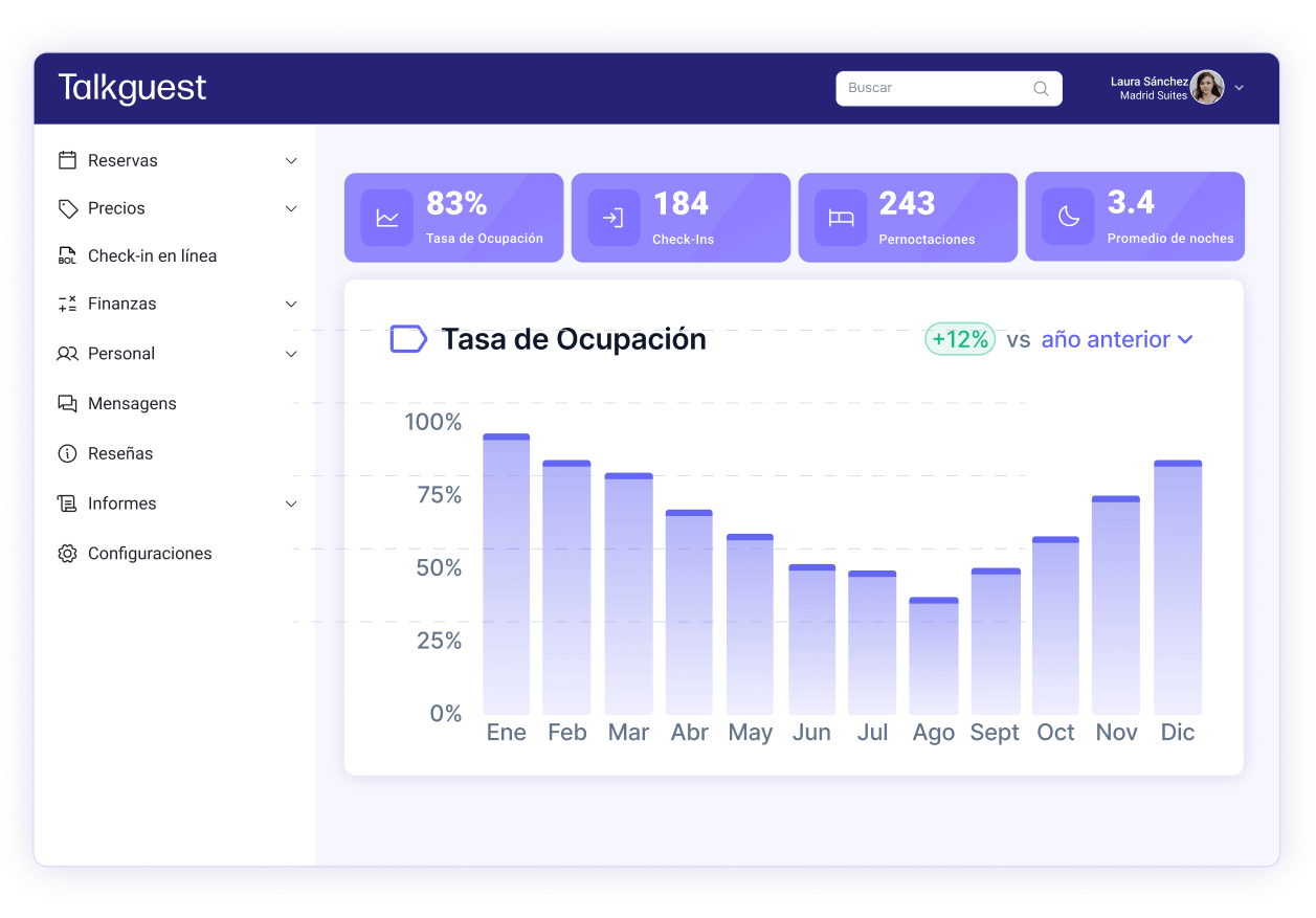Nuestras herramientas innovadoras se encargan de todo, desde la comunicación con los huéspedes y la gestión de reservas hasta las actualizaciones de precios y la programación del mantenimiento, lo que le permite dedicar tiempo a la toma de decisiones estratégicas y a las oportunidades de crecimiento.
